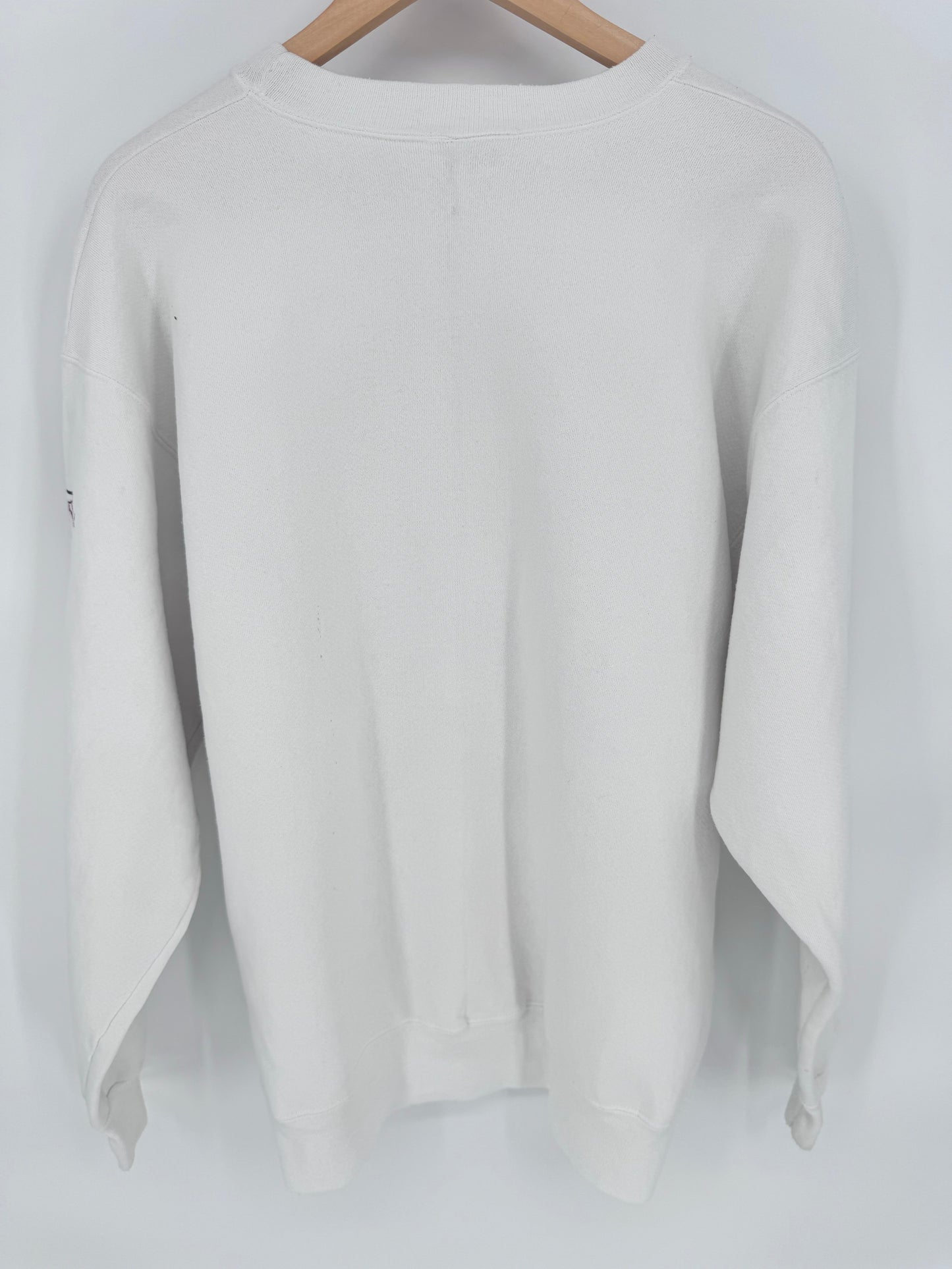 Large, Made in the USA, stain on bottom hem and back and left sleeve